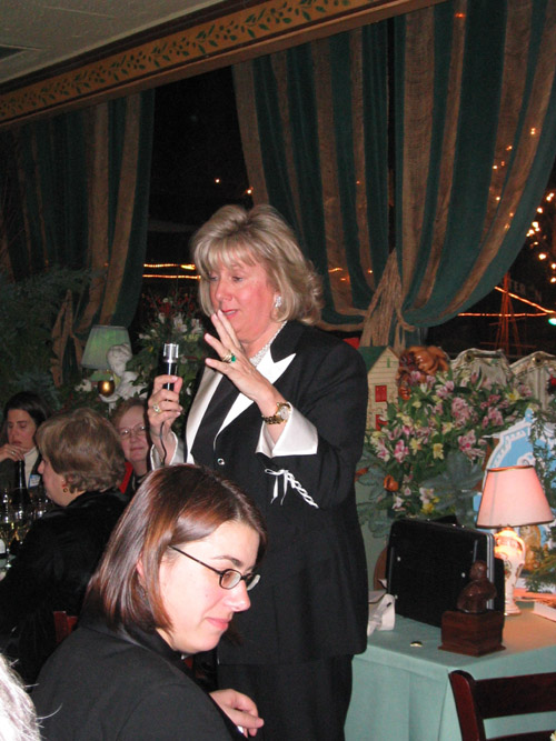 Margaret Happle Perry, a noted culinary authority, provided tips to the audience to help them succeed in the evening banquet's tasting contest of Sauce Printemps. Ms. Happle Perry is a trustee emerita of the Culinary Institute of America, formerly an executive with Pillsbury and Nabisco, and a food and nutrition editor of various publications including Redbook, Good Housekeeping and Ladies Home Journal.