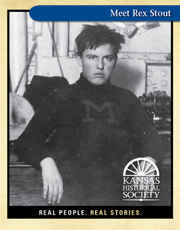 Rex Todhunter Stout was born in Noblesville, Indiana, December 1, 1886. He was the sixth of nine children born to John and Lucetta Todhunter Stout. Educated in Kansas, he was recognized as a prodigy in arithmetic. After a brief time on campus at the University of Kansas, Stout quit school to enlist in the Navy where he spent two years as warrant officer on board President Theodore Roosevelt's yacht.